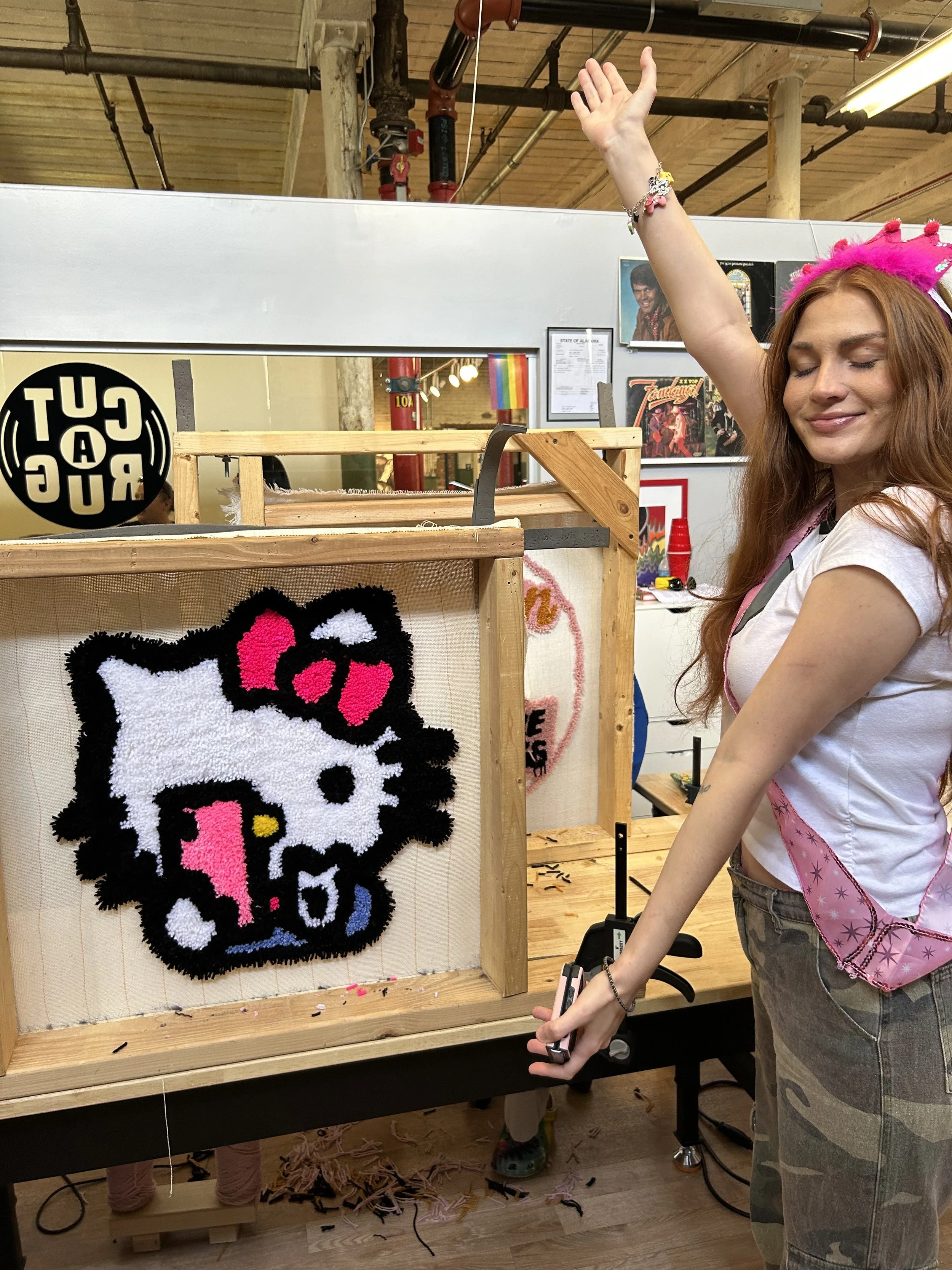 At CUT A RUG you are offered the opportunity to create a unique handmade piece of art. You’ll arrive for your workshop where refreshments and some good tunes will be waiting for you. Your predetermined design drawn as a guide on the fabric on your tufting frame…totally ready for you and that yarn to make beautiful music together! After a brief introduction to the equipment and some hands-on demonstrations and practice, you’ll be ruggin’ like you never thought you could!